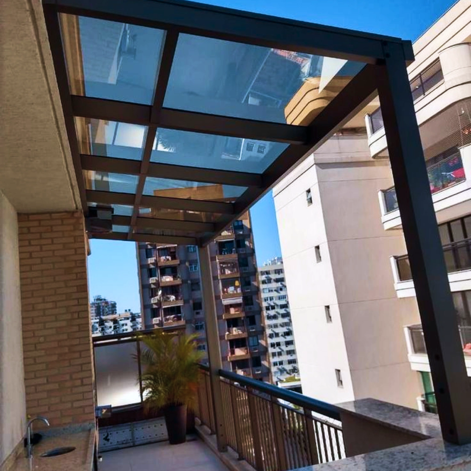 A cobertura de vidro da Camargo Glass permite que você desfrute da luz natural sem se preocupar com as intempéries. Disponível em vidro temperado e laminado, é perfeita para terraços, varandas e espaços comerciais, proporcionando proteção e estilo.